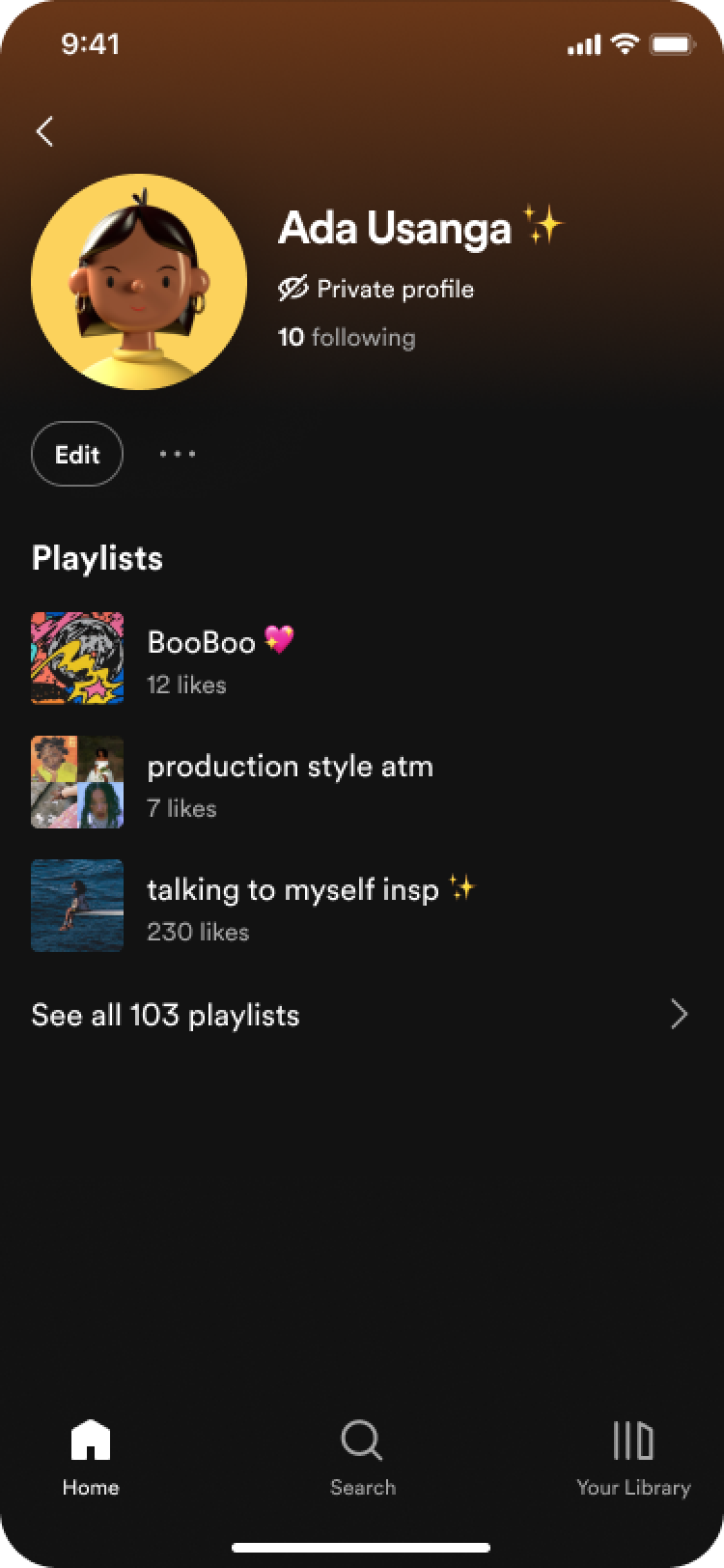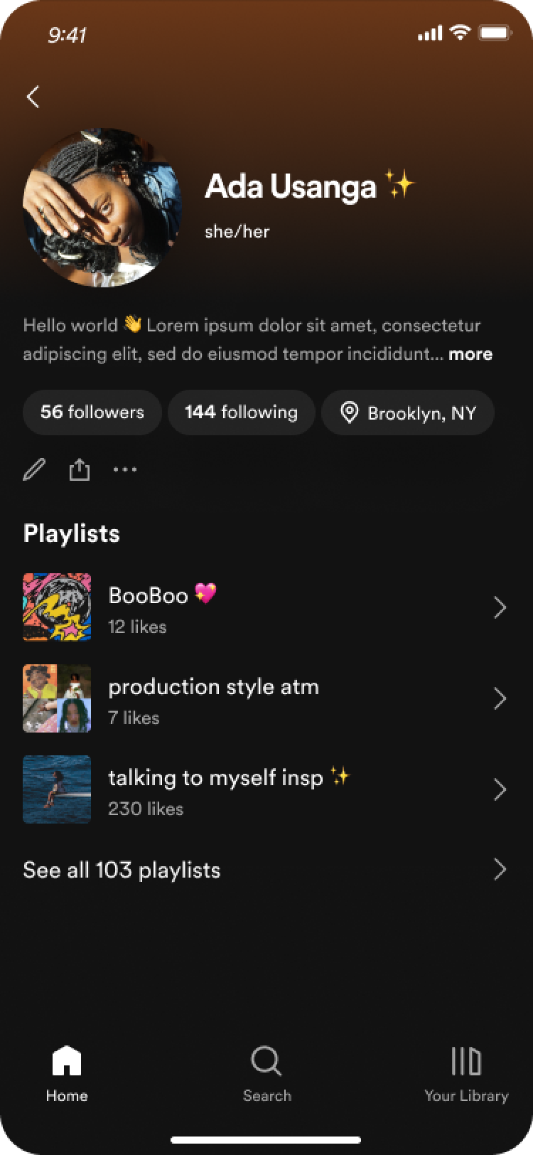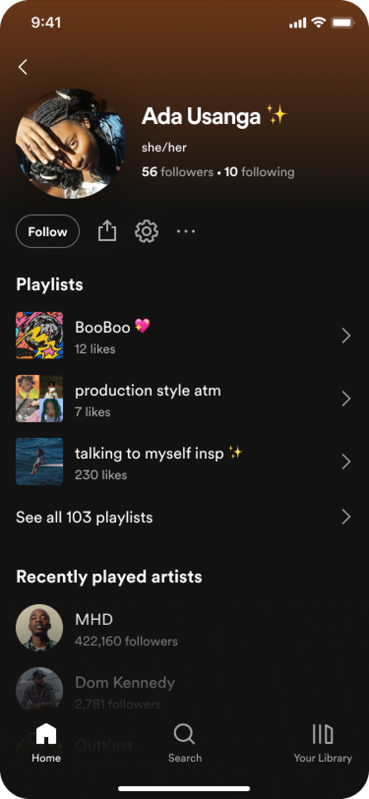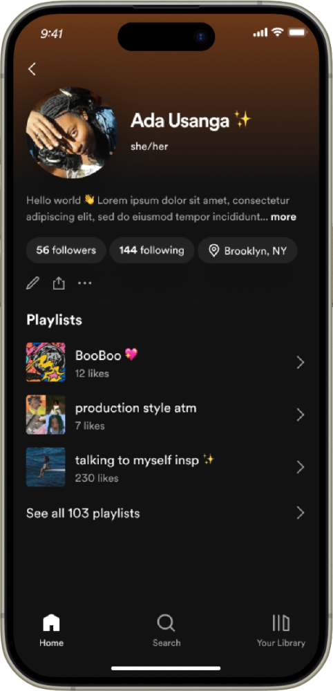 Until recently, social has not played a central role on Spotify, and thus the profile (visited by <7% of users/month), has been kept lean. However, as priorities shift and connection becomes more integral to Spotify’s strategy, there’s a need to re-establish the profile as a meaningful surface for expression and connection.